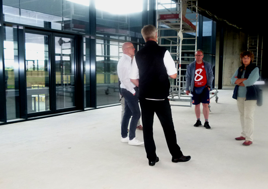 Dem Artikel „Bauen in Harmonie mit der Landschaft“ mit Kommentar des Marketingleiters Patrick Dietz von Inwerk, folgte eine Einladung zur Besichtigung des Firmengebäudes in der aktuellen Bauphase Ende August. Unser Team nahm die Einladung gerne an.