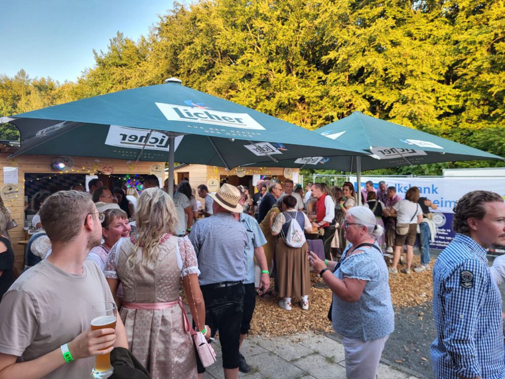 Die Kinder konnten die Tiere streicheln, hatten Spaß auf einem Karussell oder beim Bungee-Springen. Bei den Erwachsenen fand die von der Volksbank Heuchelheim gesponsert „Alm-Selfie-Box“ großen Anklang.