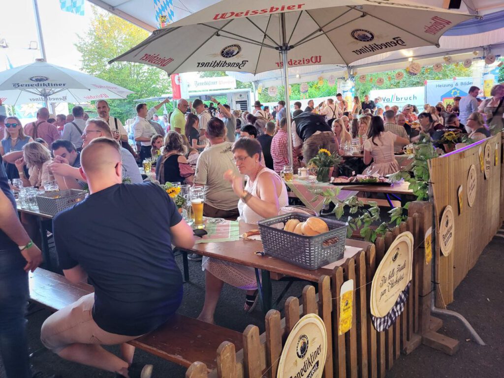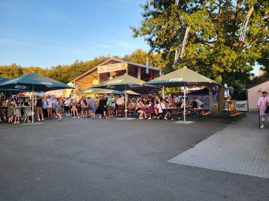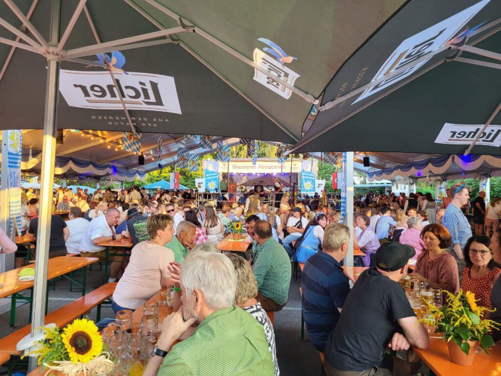 In diesem Jahr wurde ein an den Seiten offenes Zelt gestellt, „Buden“ und Attraktionen auf dem Sportplatz aufgebaut. Mit ungeheurem Aufwand und vielen fleißigen Helfern wurde bis zuletzt gewerkelt und gestellt; vorbereitet unter Federführung des Vergnügungsausschusses, des Vorstandes und dem Team der KSG Bieber.
