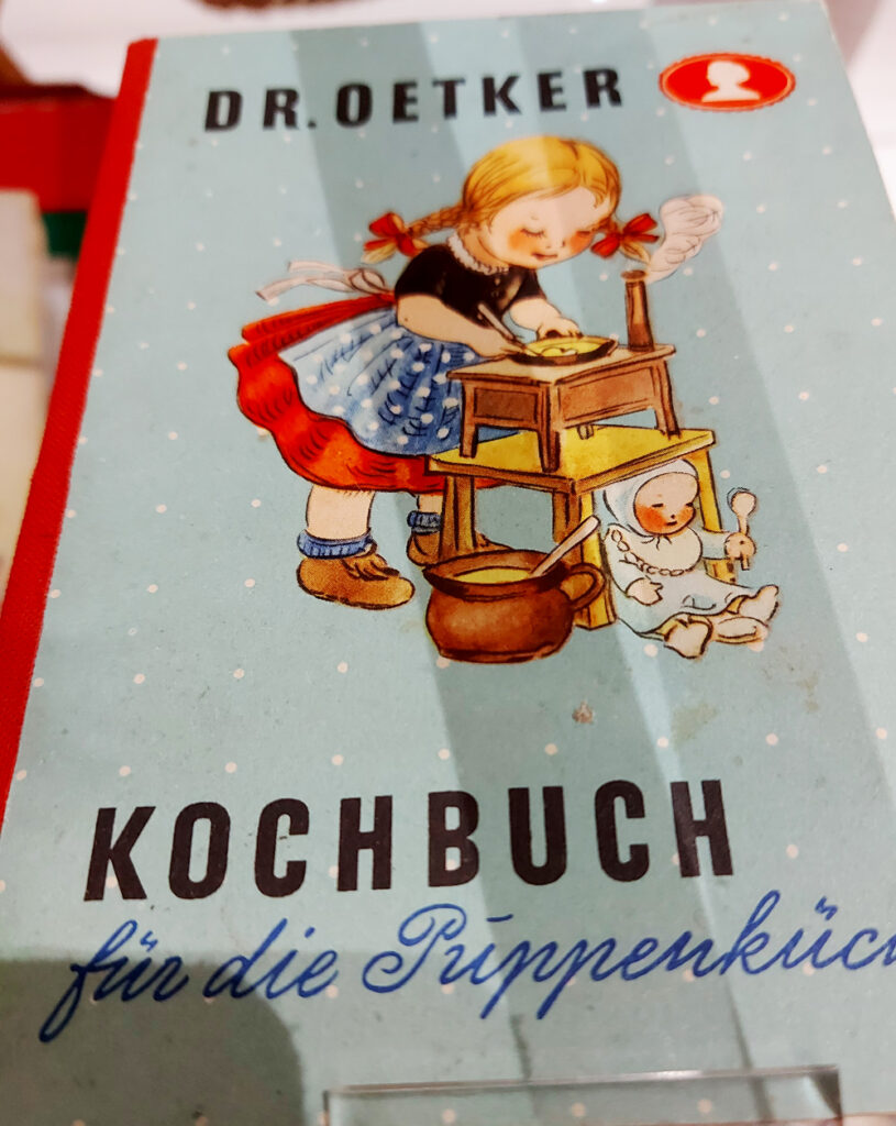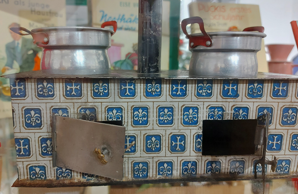 Zu den Puppenkochbüchern werden auch Puppenherde ausgestellt. In ihnen konnte man mit Esbit* – Tabletten richtiges Feuer machen.