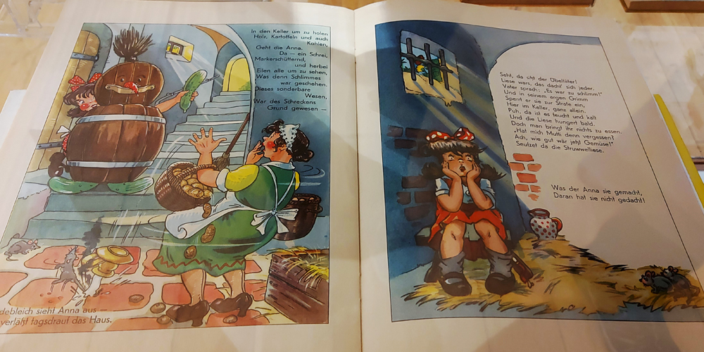 Struwwelliese erschreckt die Köchin und wird dafür zur Strafe in den Keller gesperrt. Eine bis in die 1970er Jahre durchaus verbreitete Strafe (heute fehlen in vielen Häusern die Keller).