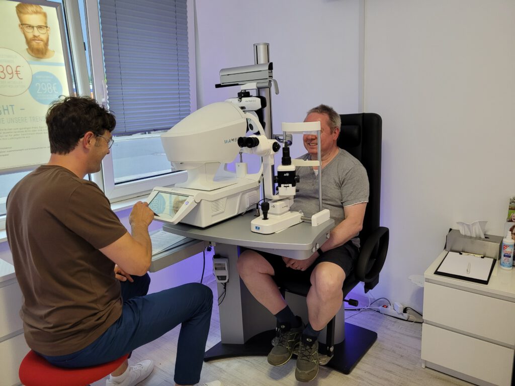 Es ist alles im allem sehr gut, wie weit die Technik schon ist. Hier kann der Optiker schon viele „Sachen“ erkennen was mit dem Auge ist. Es ist auch für Kontaktlinsenträger gut. Speziell für harte Kontaktlinsen kann das Gerät die Messung so durchführen, dass der Hersteller Linsen ohne Nachbearbeitung liefern kann.