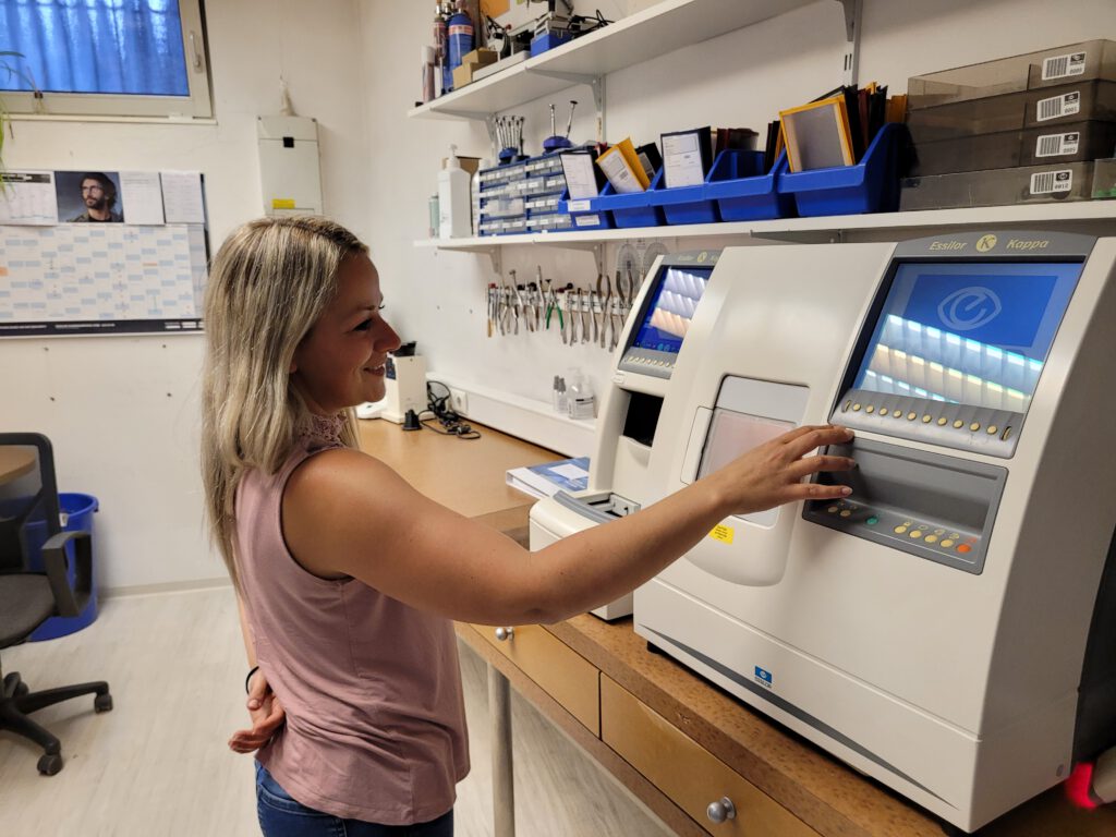 Der Optiker hat seit kurzem ein neues Gerät, womit man die Sehfähigkeit der Augen genauer feststellen kann, Dies geht bis zu 0,01 Dioptrien (Sehstärke der Brille) Dies ist einzigartig. Wichtig ist, dass es sehr, sehr genau ist. Und dies ist gut für uns Brillenträger. Ich habe mich mal als „Versuchskaninchen“ bereit gestellt um meine Augen messen zu lassen.