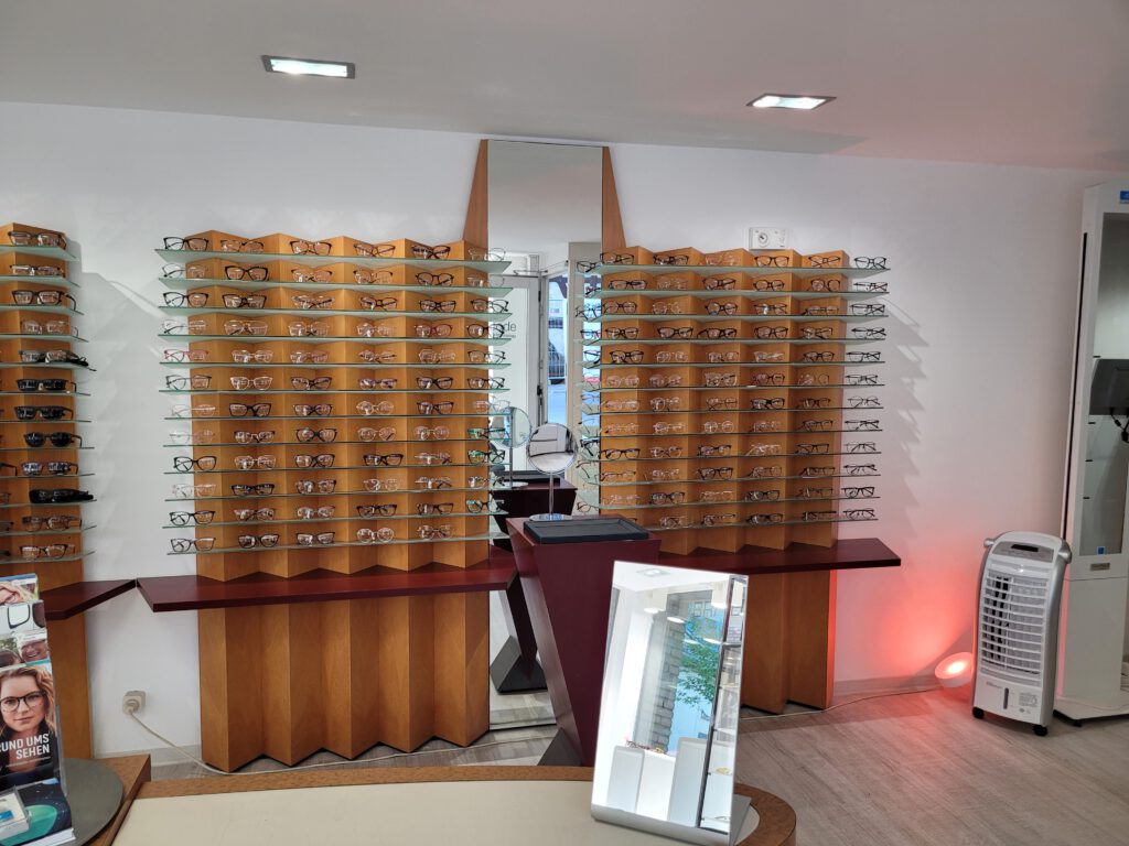 Hier bekommt man Arbeitsschutzbrillen, (UVEX) Sportbrillen, Lupen, Kontaktlinsen und Pflegemittel. Kinderbrillen kann man hier auch bekommen, Hier ist das „Glas“ aus Kunststoff. (Aus gutem Grund). Alte Brillen können auch gerne hier im Geschäft abgegeben werden.