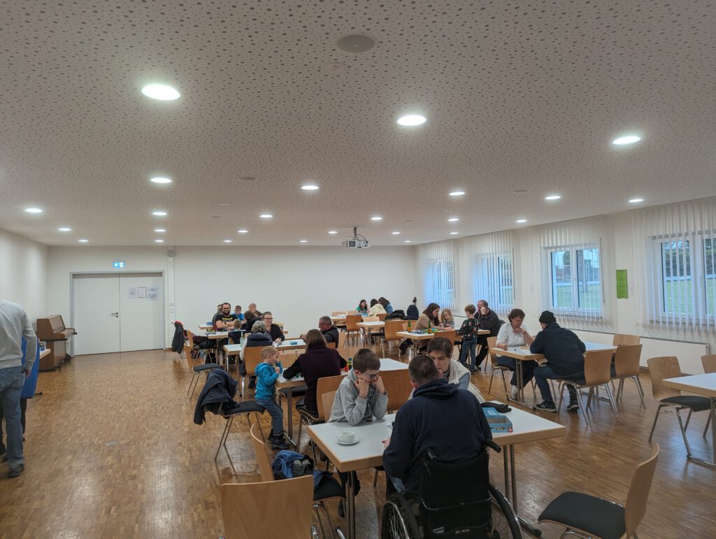 Bereits im August haben wir über den Brettspiele-Verein berichtet. Nun hatte er zum Spiele-Sonntag ins Bürgerhaus nach Rodheim geladen. Von 11 – 18 Uhr konnte man allerhand Brettspiele ausprobieren. Da gab es die alten Klassiker wie „Mensch ärgere dich nicht“ oder auch das Spiel des Jahres 2023 „Dorfromantik“ zum ausprobieren. Letztendlich waren für alle Altersklassen Spiele im Angebot und die Veranstaltung wurde gut angenommen. So war bei meinem Besuch um 13:30 Uhr nur ein freier Tisch verfügbar.