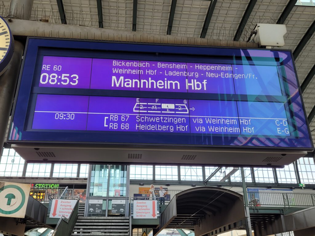 erstmal nach Frankfurt Süd dann nach Mannheim HBF und von da nach Neustadt an der Weinstrasse.